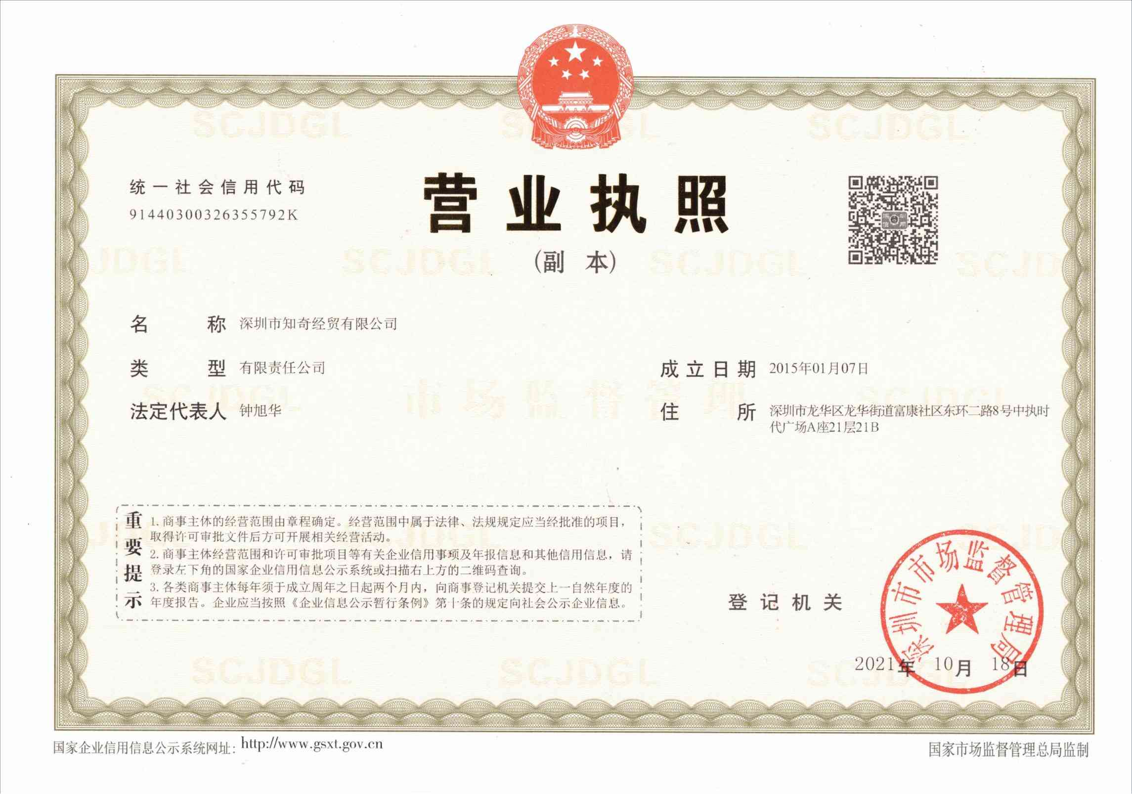 • 知奇營業執照